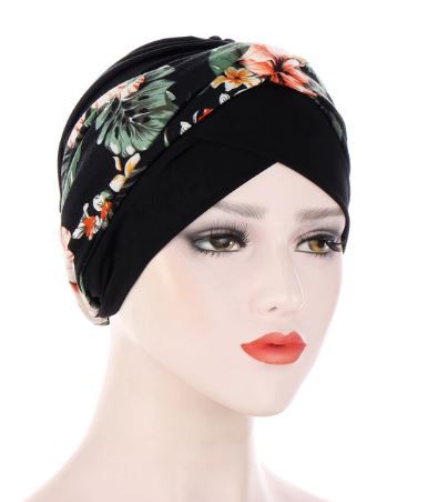 Cor preto e faixa floral com fundo também preto.